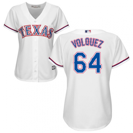 Home>MLB>Texas Rangers>Edinson Volquez>Women's Majestic Texas Rangers #64 Edinson Volquez Authentic White Home Cool Base MLB Jersey