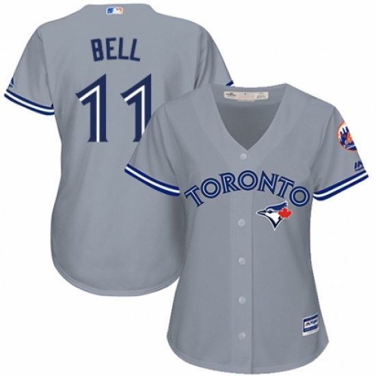 >Women's Majestic Toronto Blue Jays #11 George Bell Replica Grey Road MLB Jersey