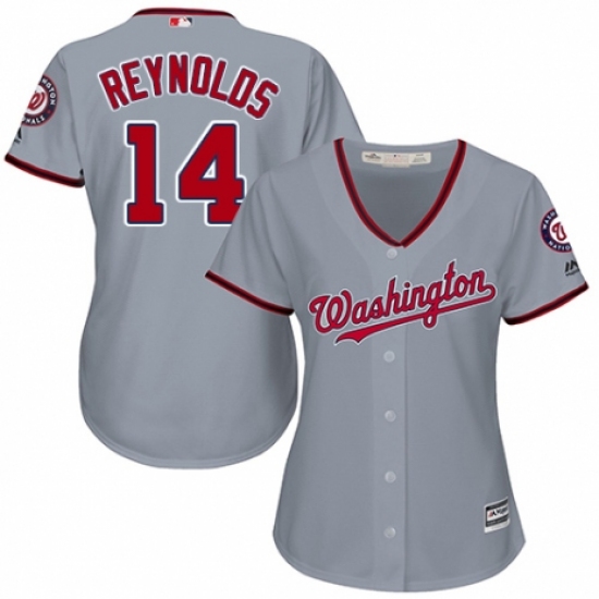 >Women's Majestic Washington Nationals #14 Mark Reynolds Replica Grey Road Cool Base MLB Jersey