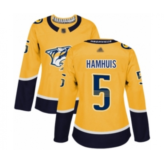 >Women's Nashville Predators #5 Dan Hamhuis Authentic Gold Home Hockey Jersey