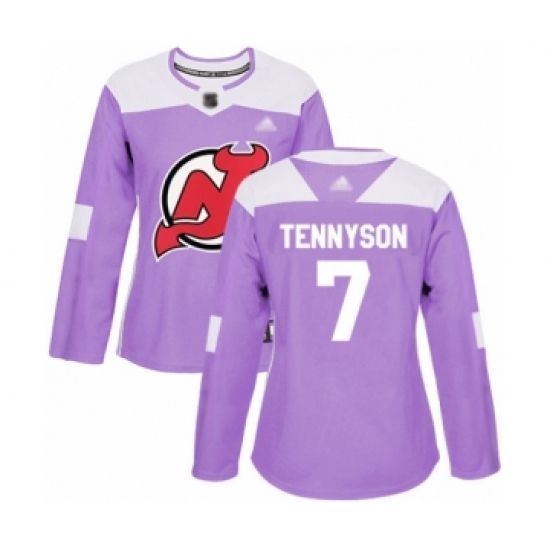 >Women's New Jersey Devils #7 Matt Tennyson Authentic Purple Fights Cancer Practice Hockey Jersey