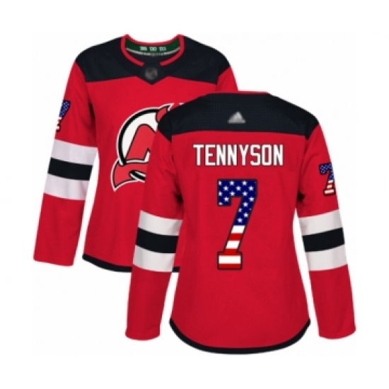 Women's New Jersey Devils #7 Matt Tennyson Authentic Red USA Flag Fashion Hockey Jersey