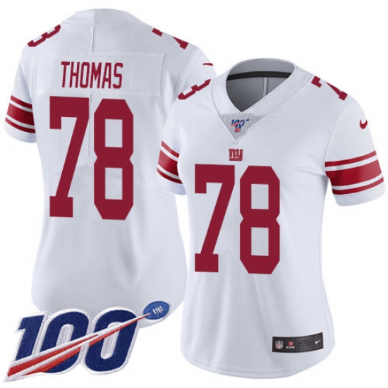 Women's New York Giants #78 Andrew Thomas White Stitched NFL 100th Season Vapor Untouchable Limited Jersey