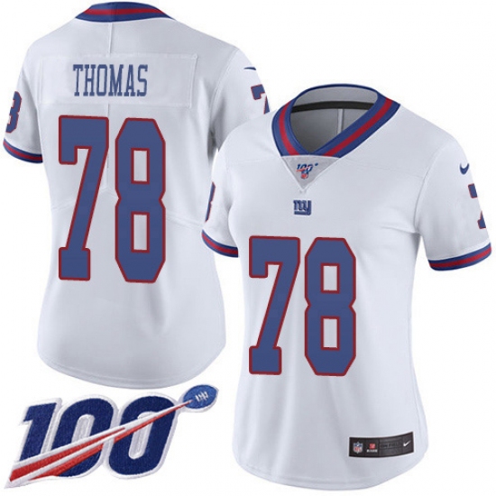 Women's New York Giants #78 Andrew Thomas White Stitched NFL Limited Rush 100th Season Jersey