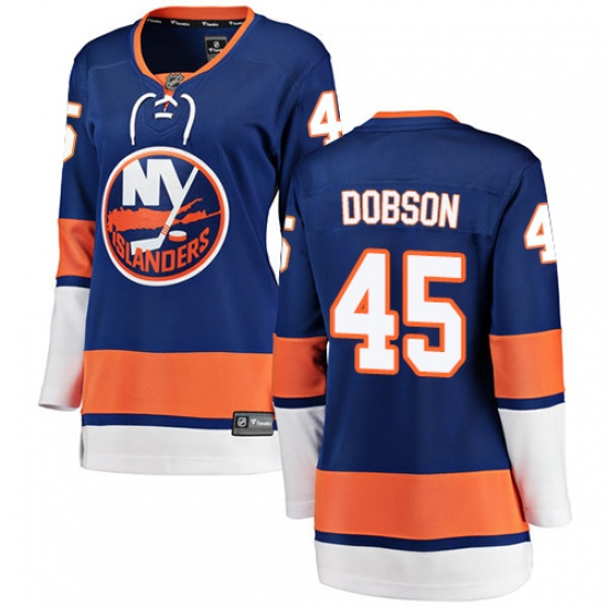 >Women's New York Islanders #45 Noah Dobson Fanatics Branded Royal Blue Home Breakaway NHL Jersey