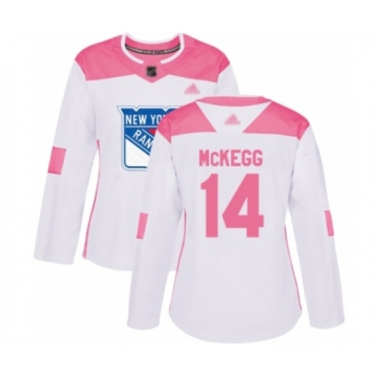 >Women's New York Rangers #14 Greg McKegg Authentic White Pink Fashion Hockey Jersey