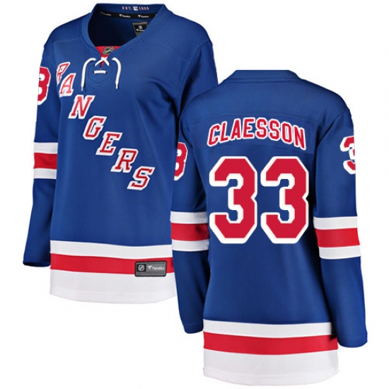 >Women's New York Rangers #33 Fredrik Claesson Fanatics Branded Royal Blue Home Breakaway NHL Jersey