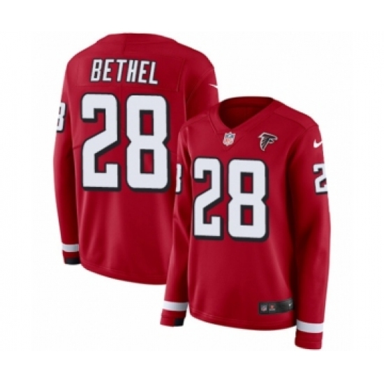 >Women's Nike Atlanta Falcons #28 Justin Bethel Limited Red Therma Long Sleeve NFL Jersey