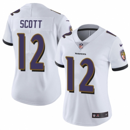 Women's Nike Baltimore Ravens #12 Jaleel Scott White Vapor Untouchable Limited Player NFL Jersey