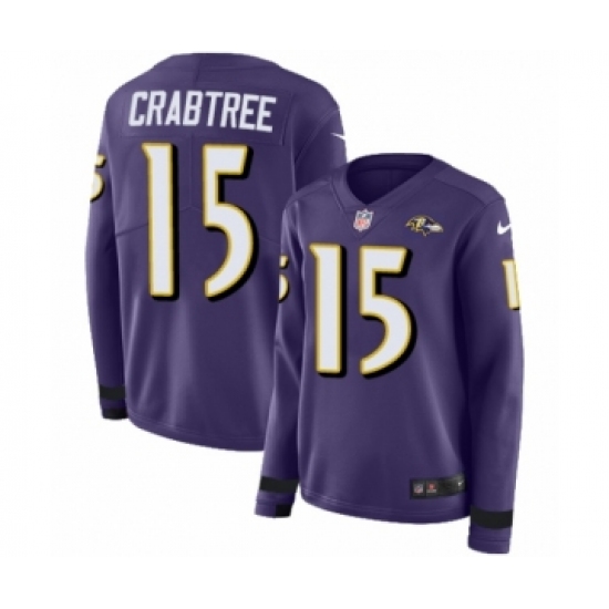 Women's Nike Baltimore Ravens #15 Michael Crabtree Limited Purple Therma Long Sleeve NFL Jersey
