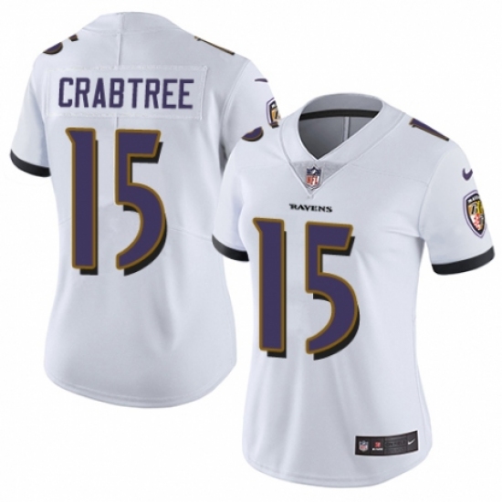 Women's Nike Baltimore Ravens #15 Michael Crabtree White Vapor Untouchable Limited Player NFL Jersey