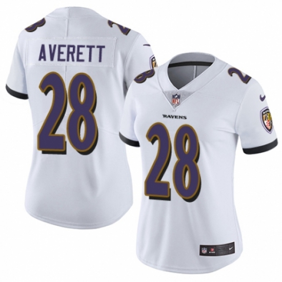 Women's Nike Baltimore Ravens #28 Anthony Averett White Vapor Untouchable Elite Player NFL Jersey