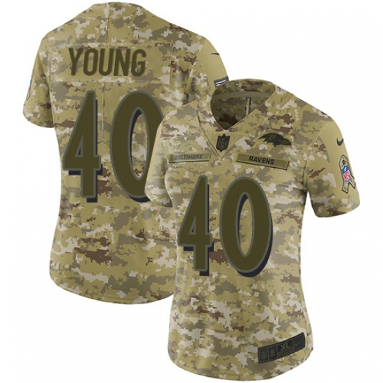 >Women's Nike Baltimore Ravens #40 Kenny Young Limited Camo 2018 Salute to Service NFL Jersey