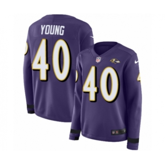>Women's Nike Baltimore Ravens #40 Kenny Young Limited Purple Therma Long Sleeve NFL Jersey