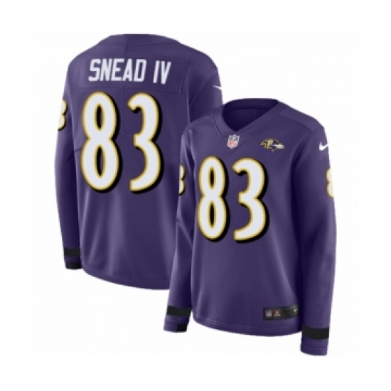 Women's Nike Baltimore Ravens #83 Willie Snead IV Limited Purple Therma Long Sleeve NFL Jersey