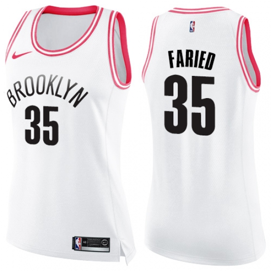 Women's Nike Brooklyn Nets #35 Kenneth Faried Swingman White Pink Fashion NBA Jersey
