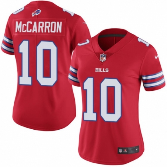 >Women's Nike Buffalo Bills #10 AJ McCarron Limited Red Rush Vapor Untouchable NFL Jersey