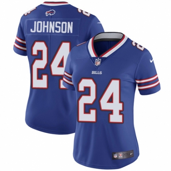 >Women's Nike Buffalo Bills #24 Taron Johnson Royal Blue Team Color Vapor Untouchable Elite Player NFL Jersey