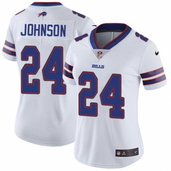 >Women's Nike Buffalo Bills #24 Taron Johnson White Vapor Untouchable Elite Player NFL Jersey