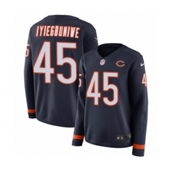 Women's Nike Chicago Bears #45 Joel Iyiegbuniwe Limited Navy Blue Therma Long Sleeve NFL Jersey