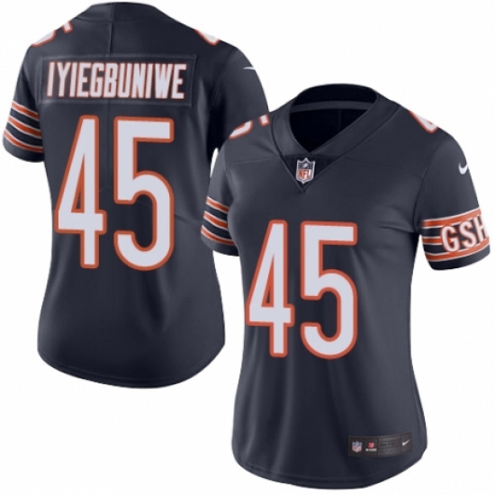 >Women's Nike Chicago Bears #45 Joel Iyiegbuniwe Navy Blue Team Color Vapor Untouchable Limited Player NFL Jersey