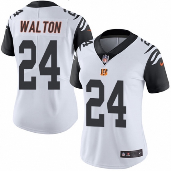 >Women's Nike Cincinnati Bengals #24 Mark Walton Limited White Rush Vapor Untouchable NFL Jersey