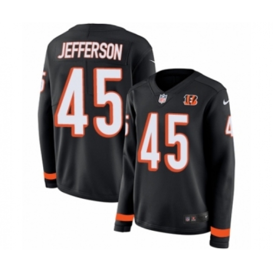 >Women's Nike Cincinnati Bengals #45 Malik Jefferson Limited Black Therma Long Sleeve NFL Jersey
