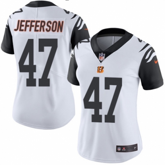 >Women's Nike Cincinnati Bengals #47 Malik Jefferson Limited White Rush Vapor Untouchable NFL Jersey
