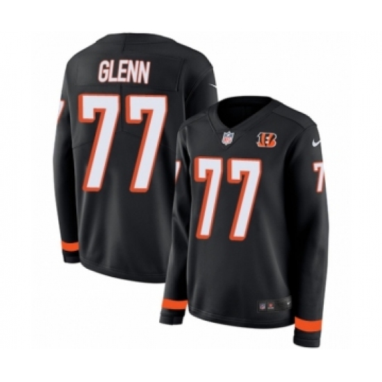 >Women's Nike Cincinnati Bengals #77 Cordy Glenn Limited Black Therma Long Sleeve NFL Jersey