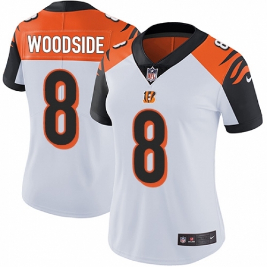 >Women's Nike Cincinnati Bengals #8 Logan Woodside White Vapor Untouchable Limited Player NFL Jersey