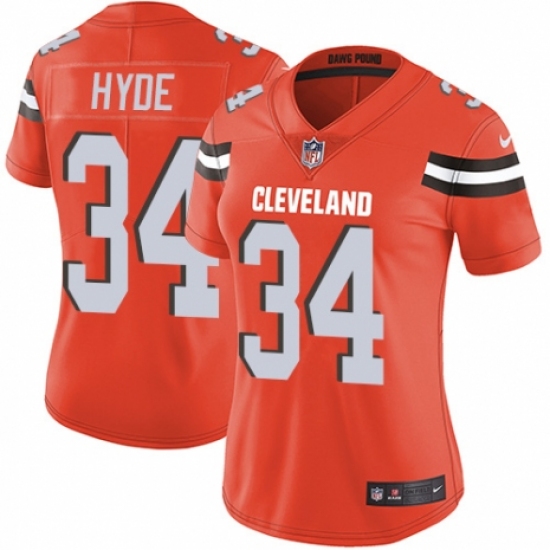 >Women's Nike Cleveland Browns #34 Carlos Hyde Orange Alternate Vapor Untouchable Limited Player NFL Jersey