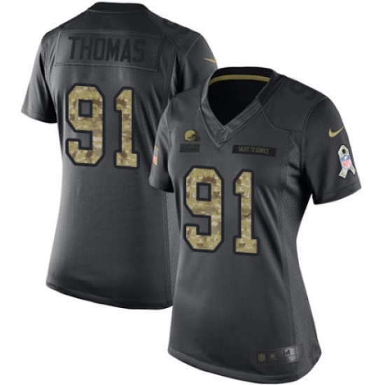Women's Nike Cleveland Browns #91 Chad Thomas Limited Black 2016 Salute to Service NFL Jersey
