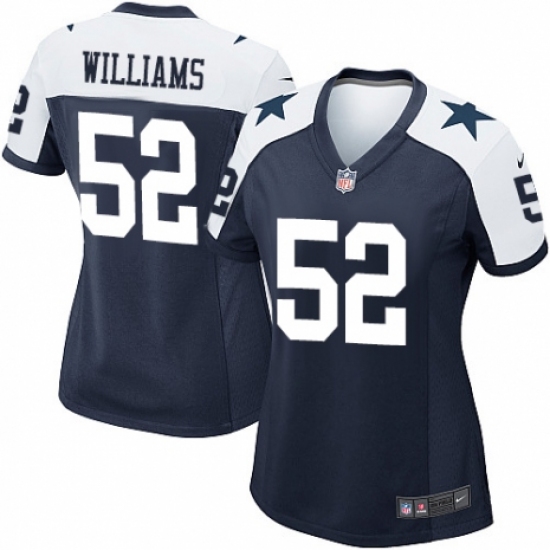 >Women's Nike Dallas Cowboys #52 Connor Williams Game Navy Blue Throwback Alternate NFL Jersey