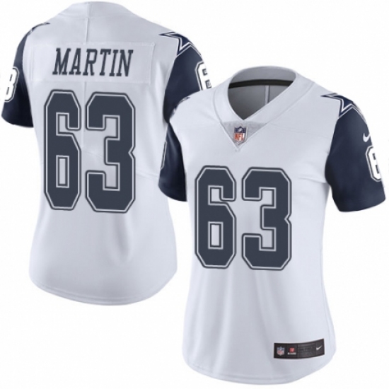 >Women's Nike Dallas Cowboys #63 Marcus Martin Limited White Rush Vapor Untouchable NFL Jersey