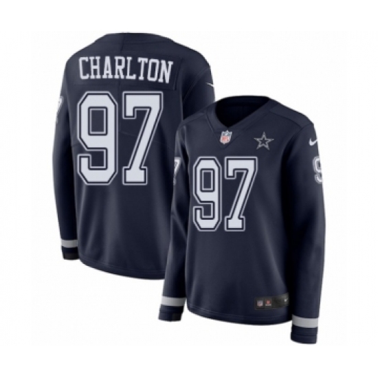 >Women's Nike Dallas Cowboys #97 Taco Charlton Limited Navy Blue Therma Long Sleeve NFL Jersey