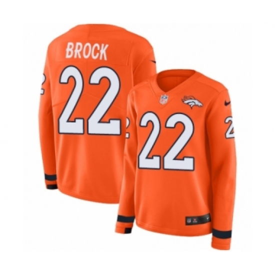 >Women's Nike Denver Broncos #22 Tramaine Brock Limited Orange Therma Long Sleeve NFL Jersey