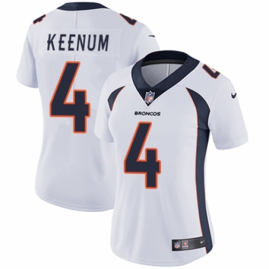 Women's Nike Denver Broncos #4 Case Keenum White Vapor Untouchable Limited Player NFL Jersey