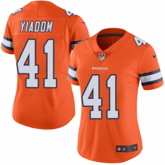 >Women's Nike Denver Broncos #41 Isaac Yiadom Limited Orange Rush Vapor Untouchable NFL Jersey