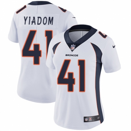 >Women's Nike Denver Broncos #41 Isaac Yiadom White Vapor Untouchable Limited Player NFL Jersey