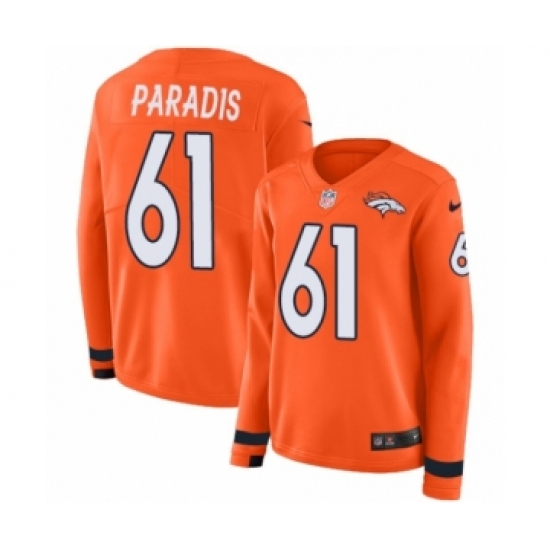 >Women's Nike Denver Broncos #61 Matt Paradis Limited Orange Therma Long Sleeve NFL Jersey