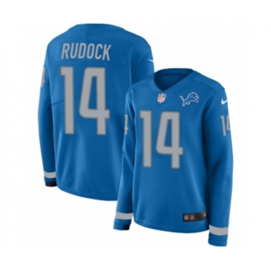 Women's Nike Detroit Lions #14 Jake Rudock Limited Blue Therma Long Sleeve NFL Jersey