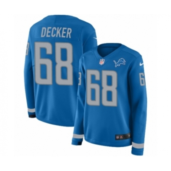 Women's Nike Detroit Lions #68 Taylor Decker Limited Blue Therma Long Sleeve NFL Jersey