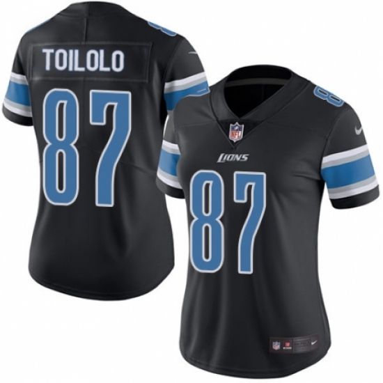 >Women's Nike Detroit Lions #87 Levine Toilolo Limited Black Rush Vapor Untouchable NFL Jersey