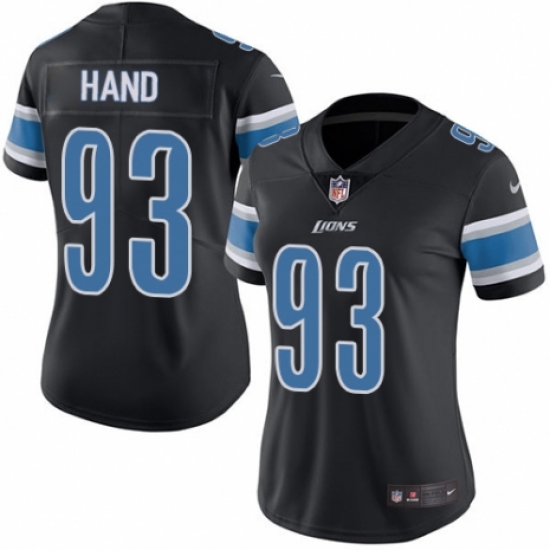 >Women's Nike Detroit Lions #93 Da'Shawn Hand Limited Black Rush Vapor Untouchable NFL Jersey