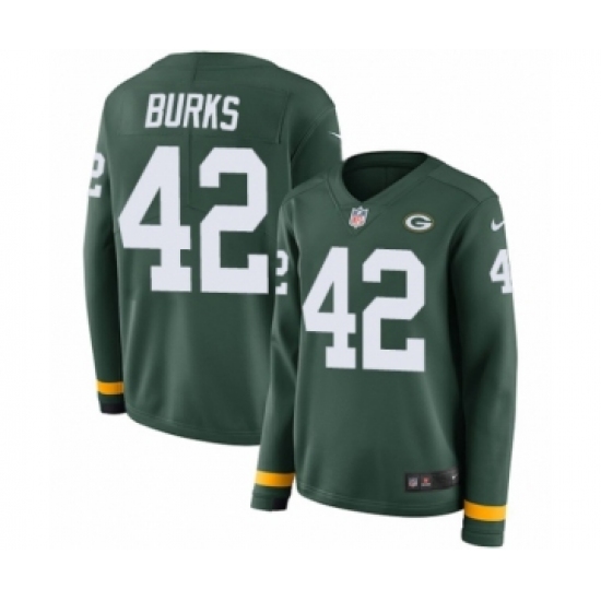 >Women's Nike Green Bay Packers #42 Oren Burks Limited Green Therma Long Sleeve NFL Jersey