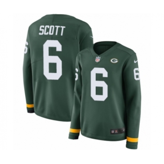 >Women's Nike Green Bay Packers #6 JK Scott Limited Green Therma Long Sleeve NFL Jersey