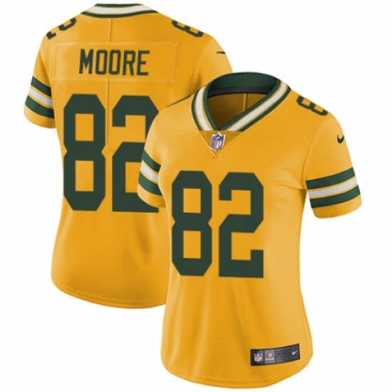 >Women's Nike Green Bay Packers #82 J'Mon Moore Limited Gold Rush Vapor Untouchable NFL Jersey