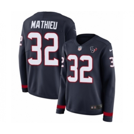 >Women's Nike Houston Texans #32 Tyrann Mathieu Limited Navy Blue Therma Long Sleeve NFL Jersey