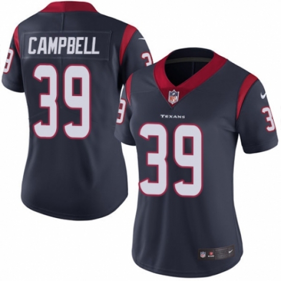 >Women's Nike Houston Texans #39 Ibraheim Campbell Navy Blue Team Color Vapor Untouchable Limited Player NFL Jersey