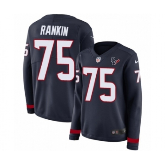 Women's Nike Houston Texans #75 Martinas Rankin Limited Navy Blue Therma Long Sleeve NFL Jersey